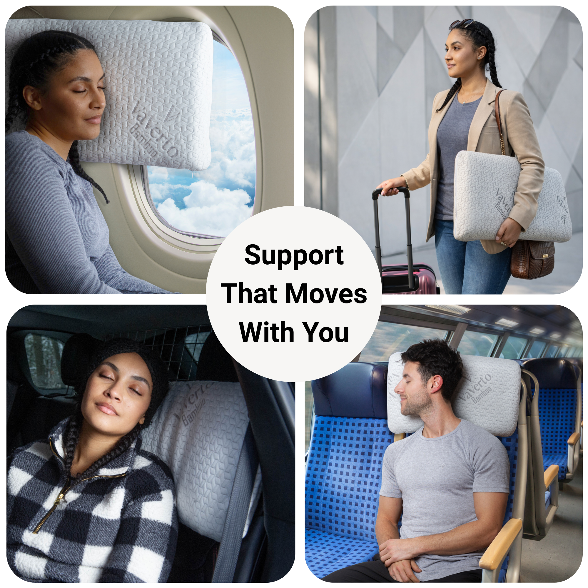 The ergonomic shape offers reliable travel neck pillow support for sitting or reclining positions.